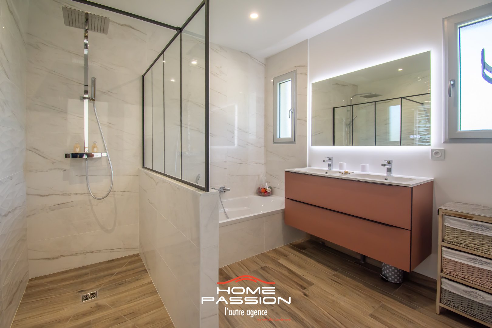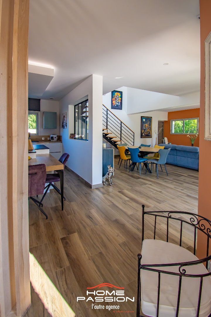 À seulement 1 500 mètres des commerces du centre des Mathes et à 6 500 mètres de la plage de La Palmyre, cette superbe villa contemporaine, construite en 2023, charme immédiatement par la qualité de son architecture et le niveau de ses prestations. Offrant près de 190 m² habitables sur une parcelle close de 1 005 m², elle dévoile une vaste pièce de vie baignée de lumière d'environ 44 m², ouverte sur la terrasse. Celle-ci est accompagnée d'une cuisine aménagée et équipée signée Mobalpa, sublimée par une verrière au style affirmé. Au rez-de-chaussée, une suite parentale avec dressing et salle d'eau aux finitions raffinées assure un confort de vie particulièrement appréciable. Un bureau, pouvant également faire office de chambre, ainsi qu'un cellier et une buanderie complètent ce niveau. À l'étage, la mezzanine distribue deux belles chambres supplémentaires ainsi qu'une salle de bains élégamment aménagée, formant un espace idéal pour accueillir famille et invités. Côté équipements, la maison bénéficie de prestations particulièrement complètes : chauffage au sol par pompe à chaleur avec plancher rafraîchissant, aspiration centralisée, volets roulants électriques, fibre optique, système d'alarme, vidéophone et interphone. À l'extérieur, l'arrosage automatique et le store banne motorisé viennent parfaire les aménagements et prolonger agréablement les espaces de vie. Un garage d'environ 30 m² avec porte motorisée complète enfin l'ensemble, apportant une fonctionnalité supplémentaire à cette propriété d'exception. Une adresse confidentielle et privilégiée, où confort contemporain et qualité des finitions s'unissent pour offrir un cadre de vie rare. 'Plus de photos, plus de détails sur le site de l'agence Home Passion. Dont honoraires 3.95% à la charge de l'acquéreur. DPE : montant estimé des dépenses annuelles d'énergie de ce logement pour un usage standard est compris entre 520 et 750 . 2021 étant l'année de référence des prix de l'énergie utilisés pour établir cette estimation. Les informations sur les risques auxquels ce bien est exposé sont disponibles sur le site Géorisques : www.georisques.gouv.fr .'