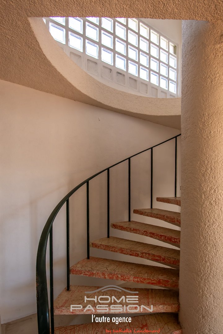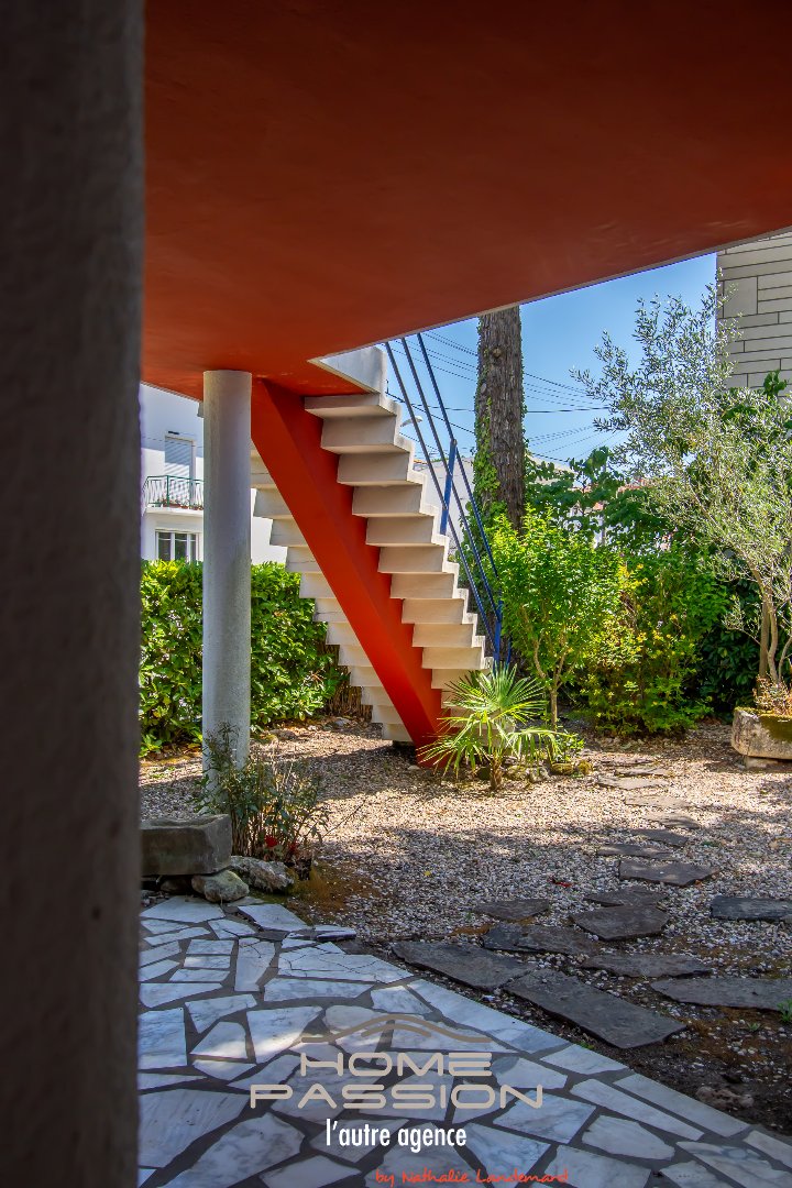 ROYAN LE CHAY - VILLA D' INSPIRATION LE CORBUSIER À seulement 550 mètres de la plage, 950 mètres du centre-ville et des animations, cette villa emblématique, nichée dans le quartier recherché du Chay à Royan, séduit par son style unique inspiré des lignes modernistes de Le Corbusier et du mouvement Bauhaus. Baptisée 'California', cette demeure des années 50, conçue par l'architecte Louis Simon, conjugue esprit vintage et architecture avant-gardiste. Elle déploie environ 140 m² habitables sur trois niveaux, au sein d'un terrain de 325 m². Pilotis, volumes ouverts, terrasses multiples et jeux de lumière traduisent l'essence même du modernisme. Dès le rez-de-chaussée, l'entrée sur pilotis donne le ton : une chambre avec salle d'eau, un garage fermé, une place de stationnement intérieur et l'accès à une grande cave en sous-sol de près de 50 m² viennent compléter ce premier niveau. À l'étage, un vaste palier baigné de lumière dessert un séjour en L ouvrant sur une terrasse, une cuisine indépendante avec cellier attenant, des toilettes, et une chambre disposant de sa propre salle d'eau. Le dernier niveau accueille deux chambres supplémentaires, une salle d'eau, une salle de bain, des WC séparés, et s'ouvre également sur des balcons et terrasses, véritables prolongements de l'habitat vers l'extérieur. Double vitrage sur toutes les ouvertures, volets roulants électriques, chauffage individuel mixte bois et fuel : les prestations assurent confort et potentiel. Ce bien, qui a conservé l'esprit des années 50, s'adresse tant aux passionnés de design fifty's qu'aux amateurs de relooking architectural. Un lieu singulier, résolument tourné vers l'histoire de l'architecture et la douceur de vivre royannaise. Plus de 35 photos, plus de détails sur le site de l'agence Home Passion. DONT 3,95% à la charge de l'acquéreur. DPE : montant estimé des dépenses annuelles d'énergie de ce logement pour un usage standard est compris entre 7600 et 10300 . 2021, 2022 et 2023 étant les années de référence des prix de l'énergie utilisés pour établir cette estimation. Les informations sur les risques auxquels ce bien est exposé sont disponibles sur le site Géorisques : www.georisques.gouv.fr.