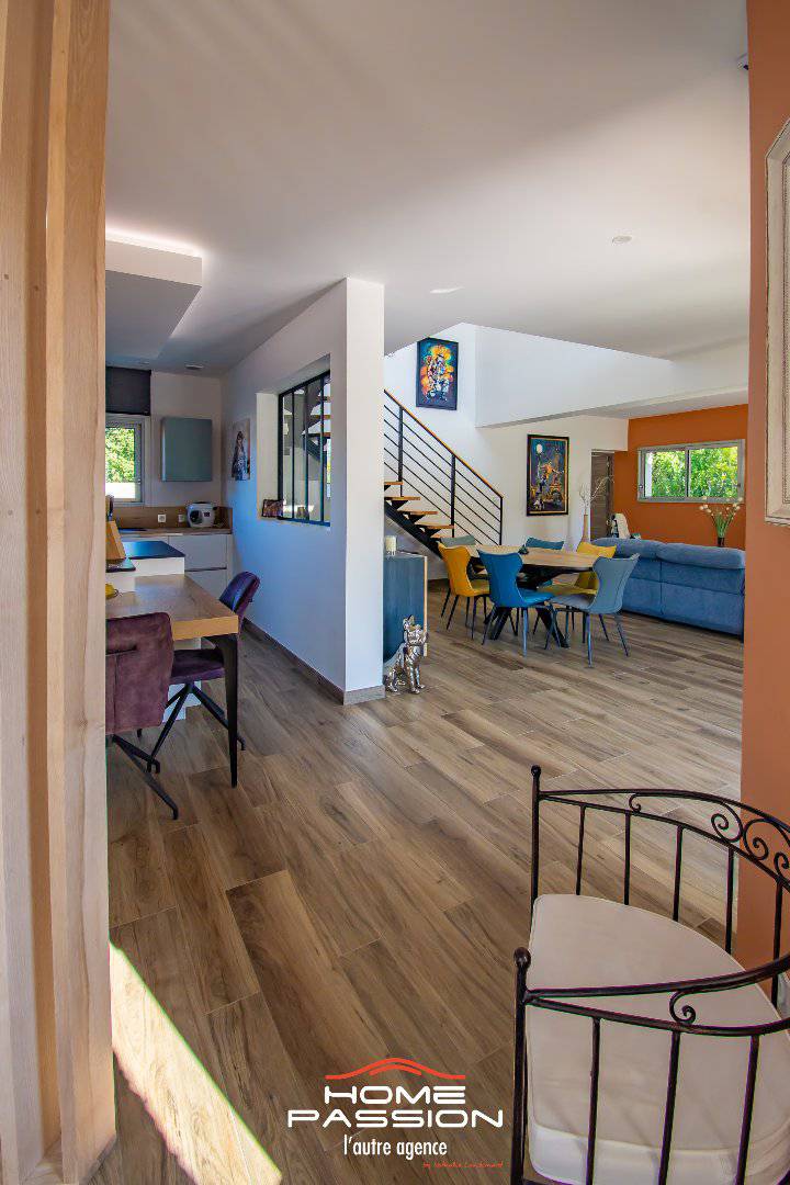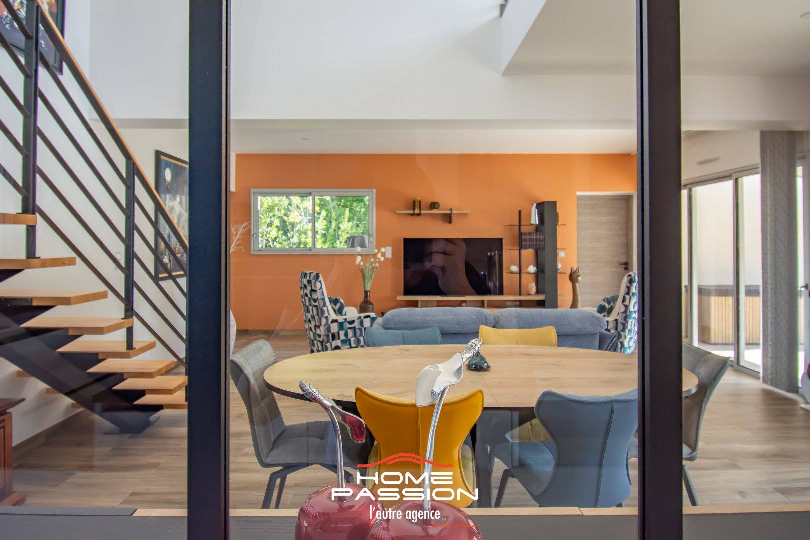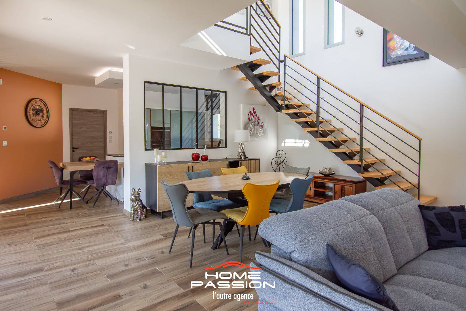 À seulement 1500 m des commerces du centre des Mathes et 6500 m de la plage de La Palmyre, cette élégante villa contemporaine, édifiée en 2023, séduit par son architecture soignée et ses prestations haut de gamme. Développant près de 190 m² habitables sur un terrain clos de 1005 m², elle s'ouvre sur une vaste pièce de vie lumineuse de 44 m² tournée vers la terrasse, complétée par une cuisine aménagée et équipée Mobalpa avec verrière au style affirmé. La suite parentale du rez-de-chaussée, avec dressing et salle d'eau raffinée, offre un confort absolu. Un bureau ou chambre supplémentaire, cellier et buanderie complètent ce niveau. À l'étage, la mezzanine accueille deux belles chambres supplémentaires et une salle de bains élégamment agencée, offrant un espace idéal pour la famille ou les invités. Côté équipements, rien n'a été laissé au hasard : chauffage au sol par pompe à chaleur avec plancher rafraîchissant, aspiration centralisée, volets roulants électriques, fibre optique, système d'alarme, vidéophone et interphone. Les extérieurs bénéficient d'un arrosage automatique et d'un store banne motorisé, prolongeant l'espace de vie vers l'extérieur. Enfin, un garage de près de 30 m² avec porte motorisée vient compléter l'ensemble, ajoutant une fonctionnalité précieuse à ce bien d'exception. Une adresse intimiste et privilégiée, où le confort moderne et la qualité des finitions créent un cadre de vie unique. 'Plus de photos, plus de détails sur le site de l'agence Home Passion. Dont honoraires 3.95% à la charge de l'acquéreur. DPE : montant estimé des dépenses annuelles d'énergie de ce logement pour un usage standard est compris entre 520 et 750 . 2021 étant l'année de référence des prix de l'énergie utilisés pour établir cette estimation. Les informations sur les risques auxquels ce bien est exposé sont disponibles sur le site Géorisques : www.georisques.gouv.fr .'
