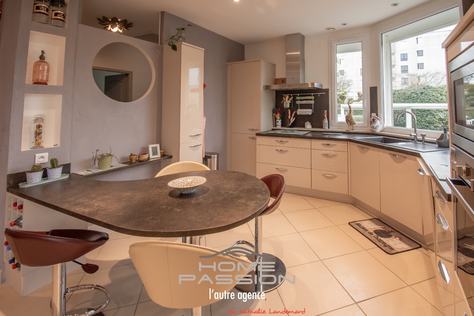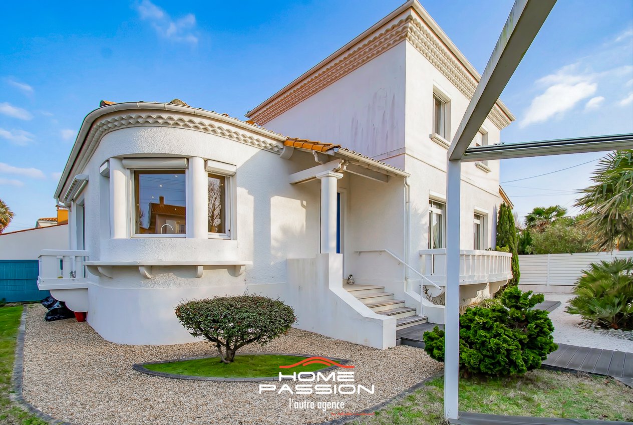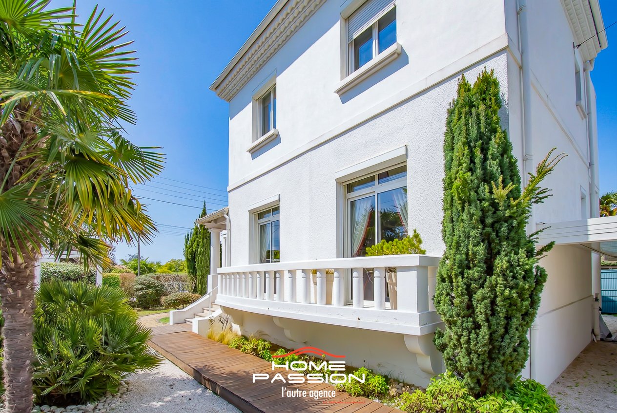 ROYAN CENTRE VILLE - VILLA ANNEE 50 - EXCLUSIVITE -Idéalement située à équidistance de la plage du Chay (650m) et du Marché Central de ROYAN Home Passion vous présente en exclusivité cette maison de caractère des années 50 offrant une surface habitable de 151m2 sur un jardin clos de 465m2, alliant bonne présentation, confort, volumes et fonctionnalités. La visite s'organise par une entrée accueillante, un salon/jour avec cuisine aménagée et équipée ouvrant sur un balcon d'agrément, un bureau, une chambre d'amis avec salle d'eau privative, une vaste suite parentale avec salle d'eau privative et dressing-room. Toilettes indépendantes. Cellier technique. L'étage accueille 2 chambres supplémentaires complétées par une salle d'eau/WC et dressing/buanderie offrant ainsi une organisation idéale pour une famille ou recevoir. Un sous-sol très spacieux et organisé comprenant différentes pièces de stockage, cave à vin et disposant d'un accès sur l'extérieur vient parfaitement compléter les fonctionnalités de cette villa. Côté jardin, un portail motorisé permet l'accès à au moins 3 véhicules sous carport de grand gabarit. Exposé au sud, on pourra également profiter d'une terrasse sous pergola dans un jardin paysager. Côté prestations, la maison est équipée d'une climatisation réversible gainable sur tout le rez-de-chaussée par PAC, motorisation des volets, menuiseries alu et PVC. Plus de photos, plus de détails sur le site de l'agence Home Passion. Dont Honoraires 4,49% à la charge de l'acquéreur. DPE : le montant estimé des dépenses annuelles d'énergie de ce logement pour un usage standard est compris entre 1498 euros et 2026 euros. 2021, 2022 et 2023 étant les années de référence des prix de l'énergie utilisés pour établir cette estimation. Visuels provisoires.
