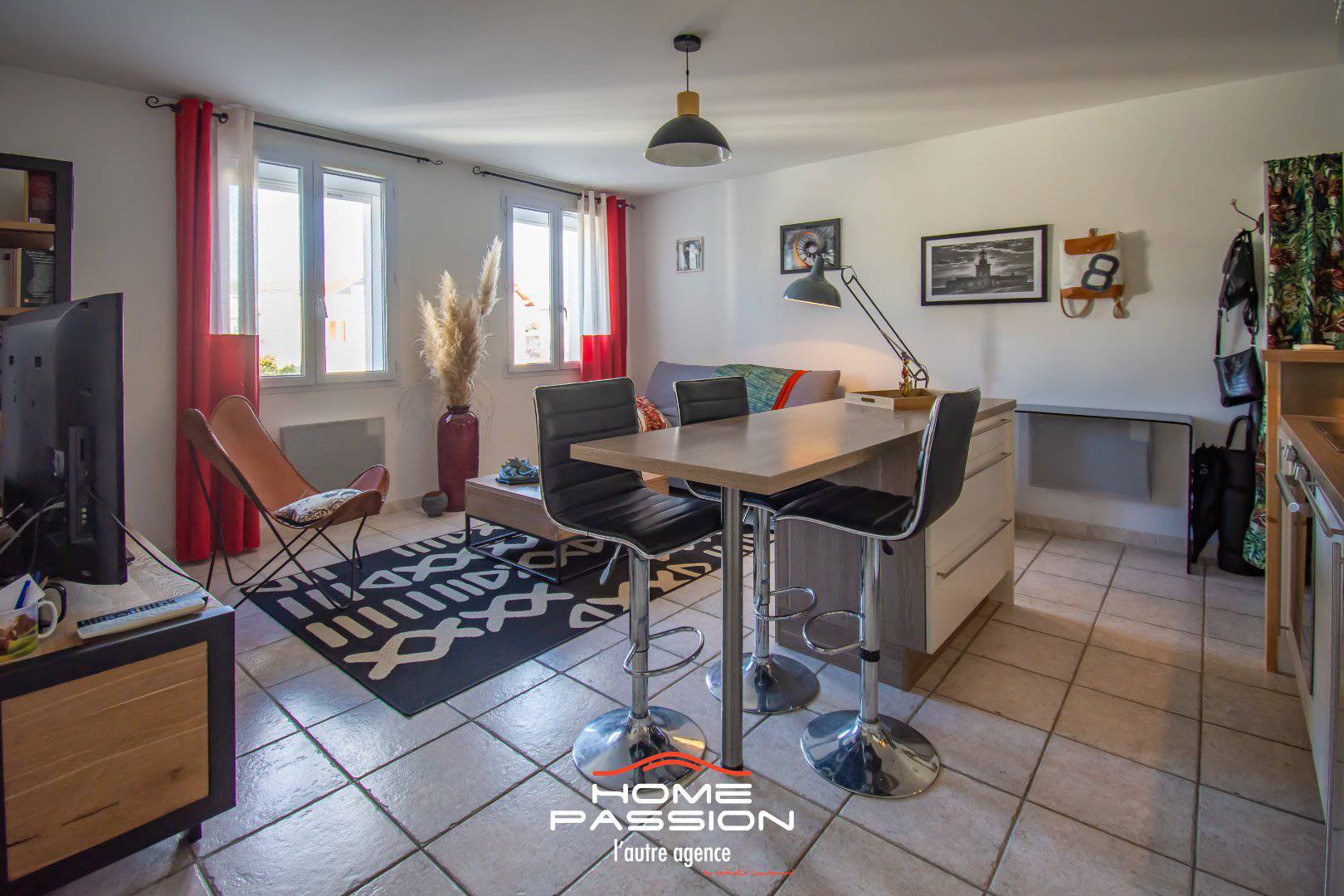 ROYAN CENTRE - APPARTEMENT T2 À 650 m du centre-ville et des animations, 700 m des commerces et des écoles, 750 m de la plage et 500 m de la gare, cet appartement profite d'une situation pratique, permettant un quotidien entièrement à pied. Situé au premier étage d'une résidence de construction traditionnelle édifiée en 1962, cet appartement de deux pièces développe une surface habitable d'environ 43 m². La pièce de vie d'environ 25 m² réunit le séjour et la cuisine aménagée et équipée, disposant notamment de plaques à induction et de rangements fonctionnels. L'ensemble est propre, bien entretenu et immédiatement habitable. La partie nuit se compose d'une chambre d'environ 12 m², équipée d'un placard et de volets roulants électriques. Une salle d'eau d'environ 5 m², comprenant une douche, une vasque et des WC suspendus, complète le logement. Un cellier d'environ 3 m², intégrant le ballon d'eau chaude et les branchements pour machine à laver, offre un espace de rangement complémentaire appréciable. L'appartement bénéficie du double vitrage et se situe dans un environnement calme tout en restant à proximité immédiate des commodités. Un bien adapté aussi bien à une résidence principale, un pied-à-terre qu'à un projet d'investissement locatif. Charges de copropriété prévisionnelles : 640euros/an Plus de photos, plus de détails sur le site de l'agence Home Passion. Dont honoraires 8000euros TTC à la charge de l'acquéreur. DPE : montant estimé des dépenses annuelles d'énergie de ce logement pour un usage standard est compris entre 800 euros et 1130 euros. 2021, 2022 et 2023 étant les années de référence des prix de l'énergie utilisés pour établir cette estimation. Les informations sur les risques auxquels ce bien est exposé sont disponibles sur le site Géorisques : www.georisques.gouv.fr .