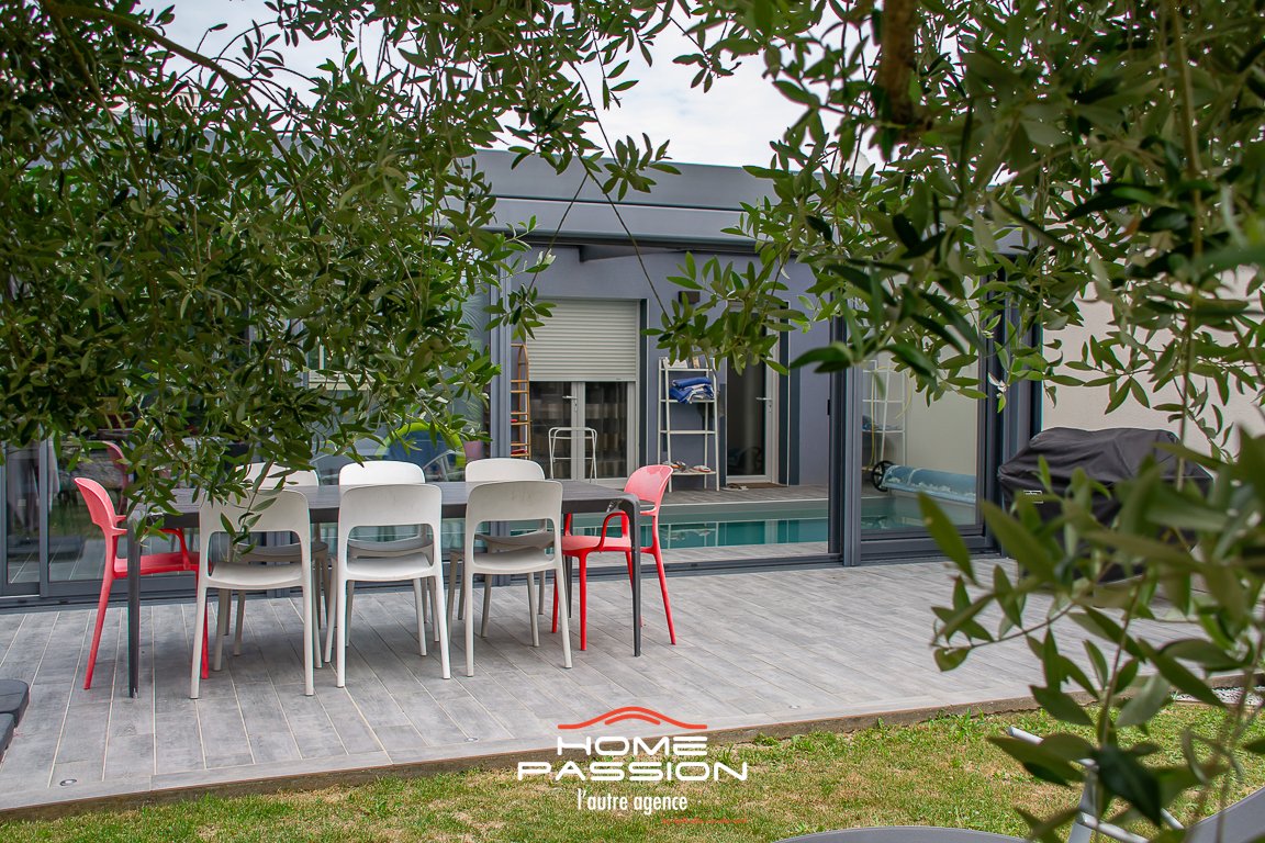 SAUJON Quartier résidentiel, à 900 m du centre-ville et 450 m des commerces- Située dans un environnement calme à seulement quelques minutes à pied des commerces, cette maison à l'architecture cubique de 2012 développe 116 m² habitables sur une parcelle joliement paysagée de 688 m², sans mitoyenneté. Elle propose une vie de plain-pied fluide et lumineuse, avec : Une pièce à vivre de plus de 42 m² comprenant salon, salle à manger et cuisine ouverte aménagée et équipée, le tout baigné de lumière et ouvrant sur une superbe véranda climatisée, et une piscine chauffée et couverte, trois chambres avec placards et parquet flottant, une salle d'eau moderne avec accès direct sur l'extérieur et un wc. Un petit cellier et une dépendance technique attenante constituent les annexes. Garage indépendant en structure bois et stationnement aisé sur la parcelle. Côté confort : chauffage au sol (gaz), climatisation réversible, menuiseries alu/PVC avec double vitrage, volets roulants électriques, vidéophone, portail motorisé, fibre optique, piscine chauffée au sel (7 X 3.50). DPE : le montant estimé des dépenses annuelles d'énergie de ce logement, est de 1011 (année de référence 2015) DPE nouvelle version en cours. Honoraires de 4.80 % à la charge de l'acquéreur. Les informations sur les risques auxquels ce bien est exposé sont disponibles sur le site Géorisques : www.georisques.gouv.fr