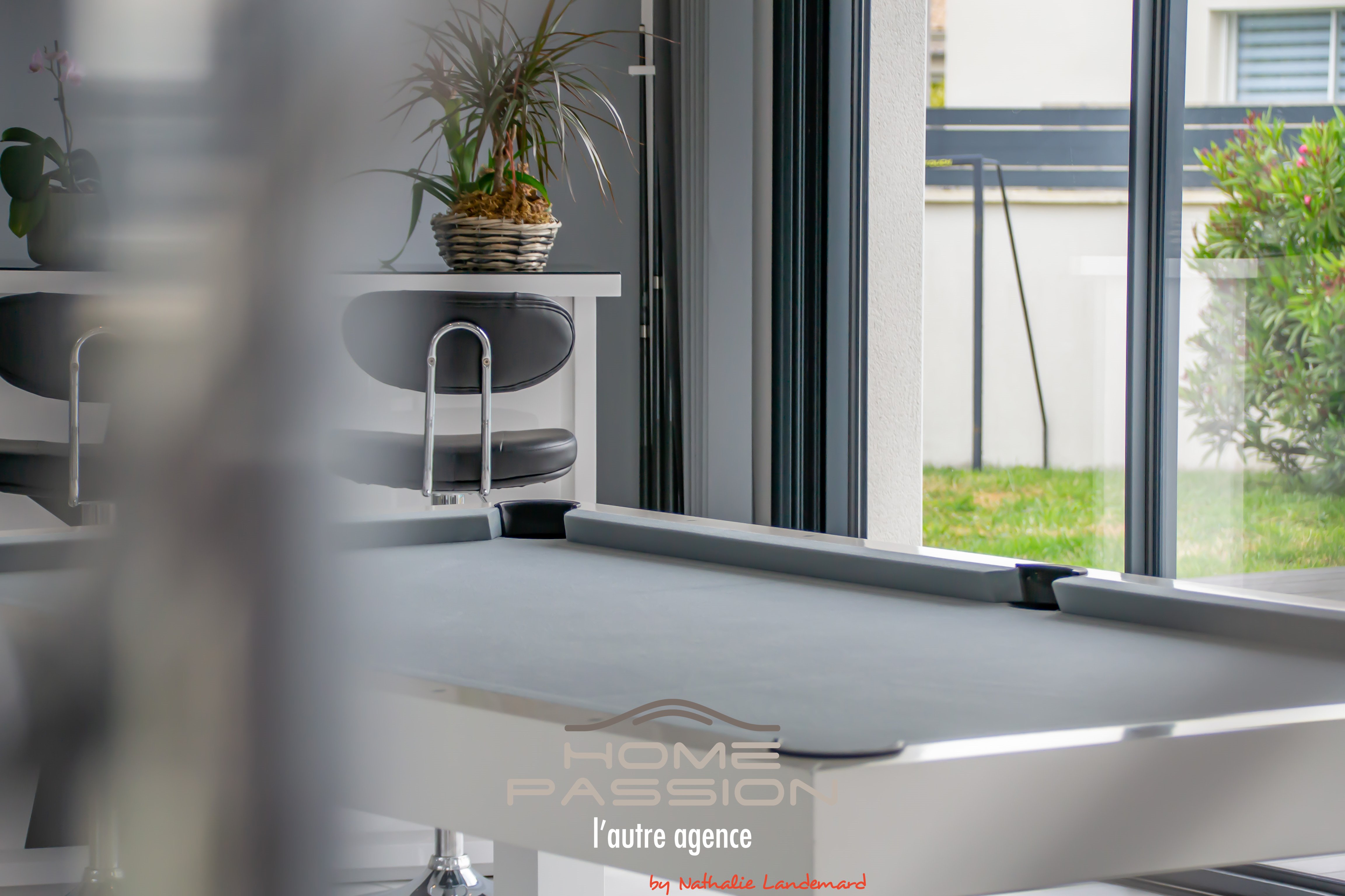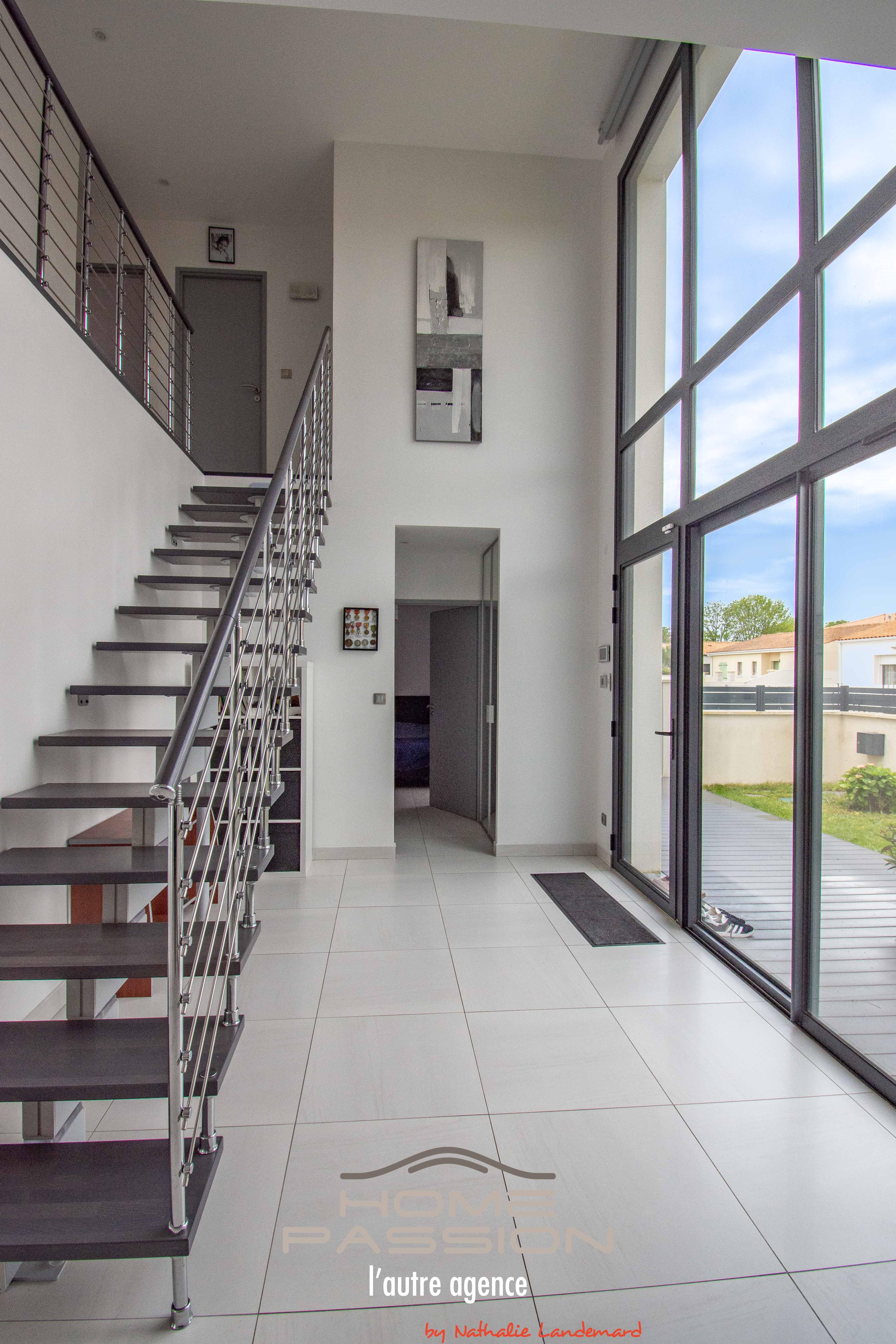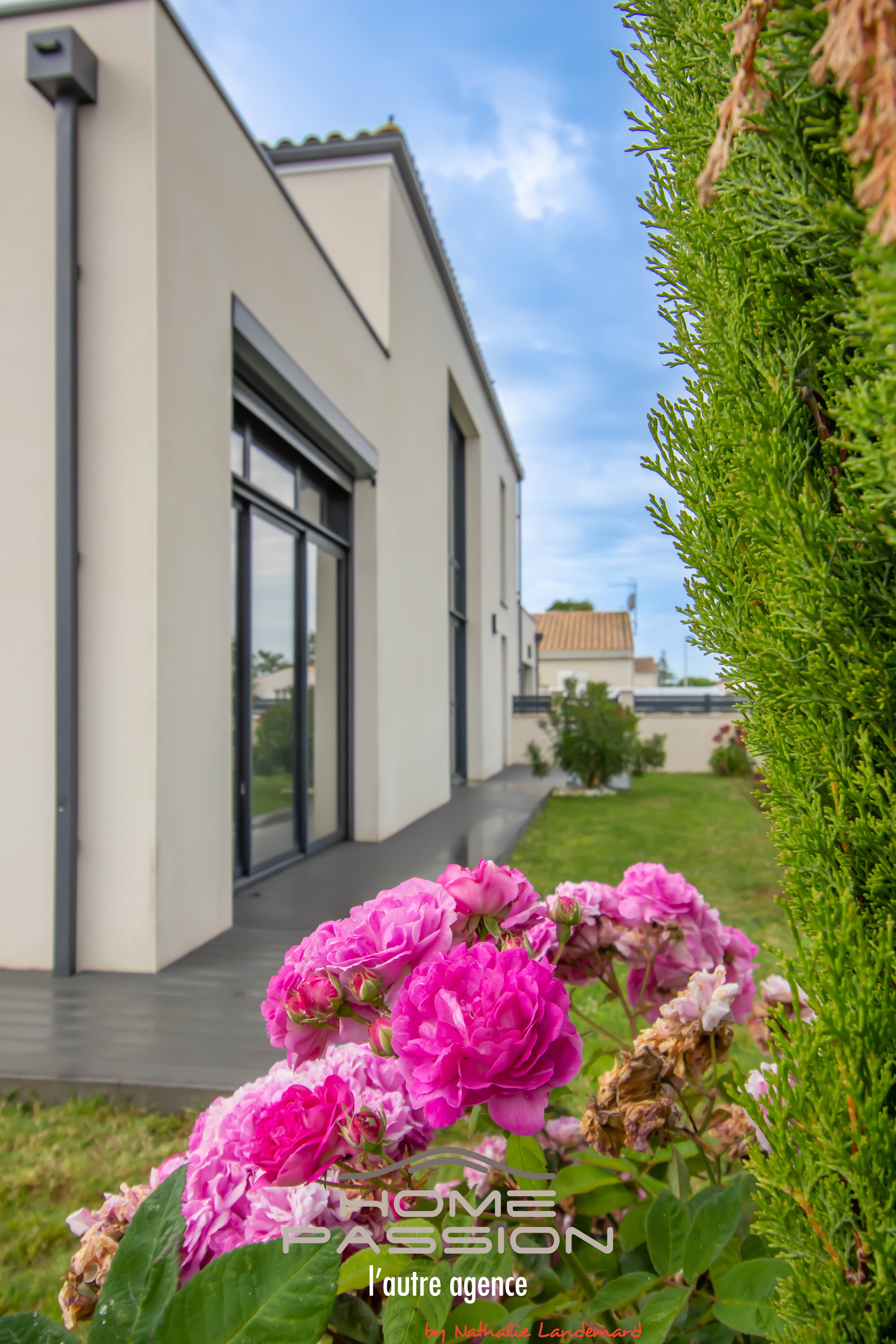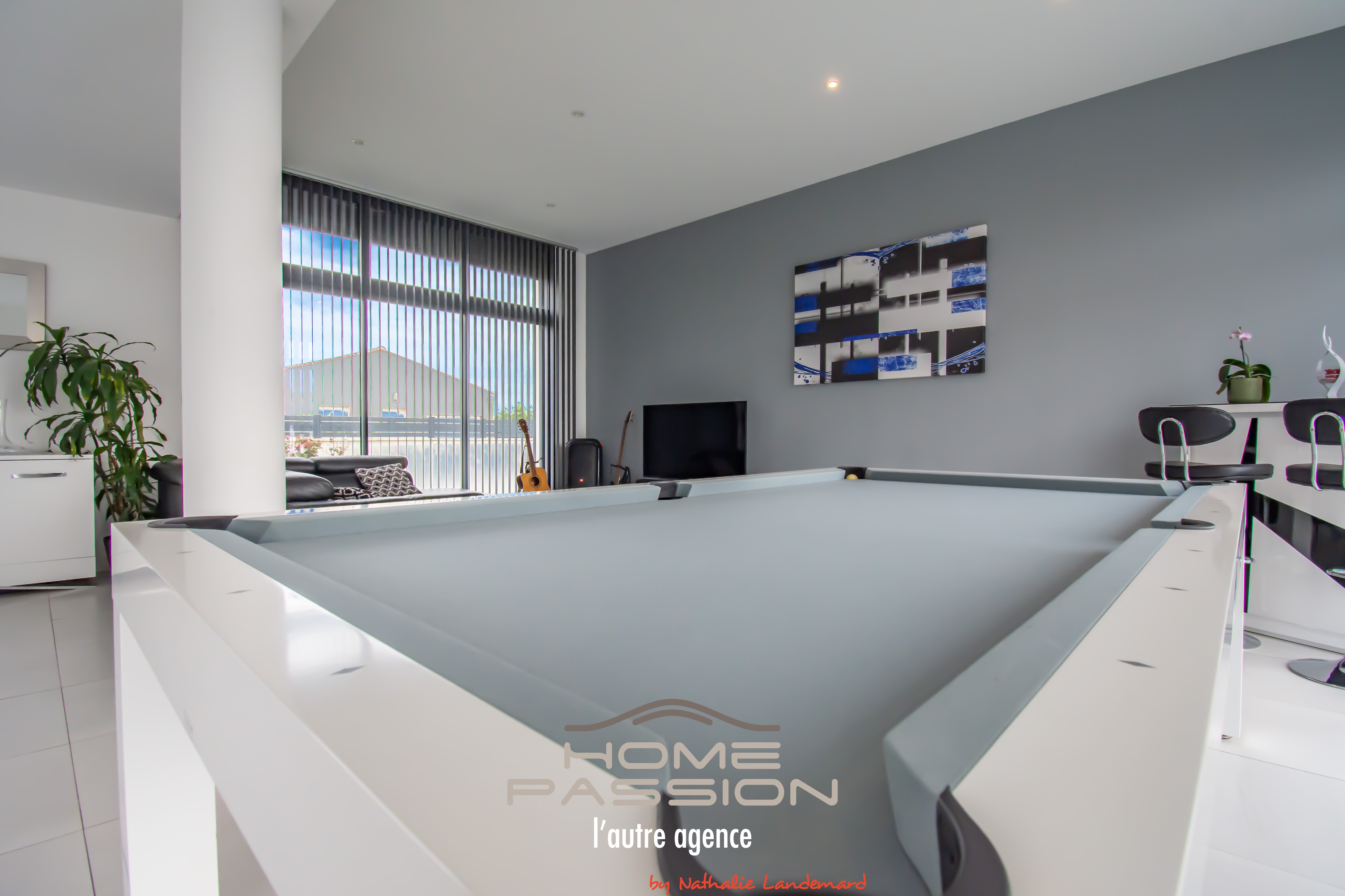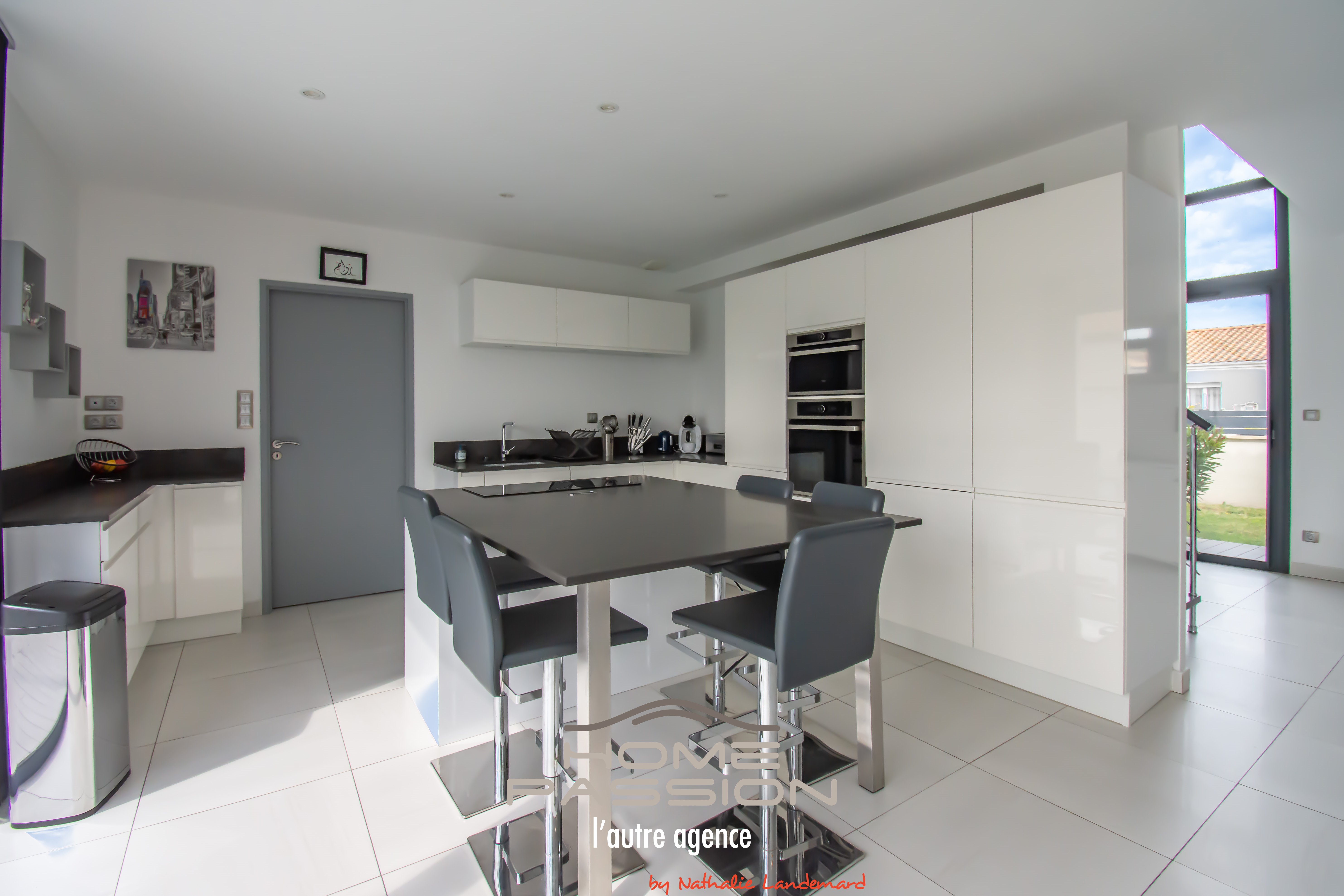 SEMUSSAC - MAISON CONTEMPORAINE AVEC PISCINE EXCLUSIVITE Découvrez cette magnifique maison contemporaine située à Semussac, à seulement 600 mètres du centre-ville et des commerces. Conçue en 2016, cette demeure allie modernité et confort sur une surface habitable de 179 m², le tout implanté sur un terrain de 568 m². Dès l'entrée, vous serez séduit par un vaste séjour de 48 m² baigné de lumière grâce à ses grandes baies vitrées donnant sur la piscine. Cette pièce de vie offre également une hauteur sous plafond de 3 mètres, un conduit de cheminée, et même un billard sur mesure transformable en table pour 12 couverts. La cuisine, aménagée et équipée, est un véritable espace convivial avec son îlot central et son accès direct à la terrasse. Pour votre confort, un cellier/buanderie de 9 m² est également disponible, comprenant des branchements pour une machine à laver, un adoucisseur d'eau, et un ballon d'eau chaude thermodynamique. Au rez-de-chaussée, la suite parentale de 13 m², avec vue sur le jardin, dispose d'un dressing et d'une salle d'eau privative équipée d'une vasque et d'un sèche-serviette. Deux autres chambres à l'étage, chacune de 14 m², bénéficient de placards et de la climatisation réversible, tandis qu'une troisième chambre de 14 m² offre une vue sur la piscine. Une salle de bain avec baignoire et douche, ainsi qu'un bureau de 15 m² en mezzanine, complètent l'étage. La maison dispose également d'un grand garage de 42 m² avec porte sectionnelle motorisée et accès direct à la terrasse, ainsi que de nombreux équipements modernes tels que des volets roulants électriques, une alarme, un interphone, un vidéophone, et une domotique téléphonique. L'extérieur n'est pas en reste avec une piscine de 8x4 mètres, filtrée au sel, et équipée d'un rideau électrique et d'un électrolyseur. La terrasse, équipée de stores bannes de 10m de long, est idéale pour profiter des belles journées ensoleillées,. Cette maison, au style contemporain et aux prestations haut de gamme, est prête à accueillir ses nouveaux propriétaires en quête de confort et de modernité. Plus de photos, plus de détails sur le site de l'agence Home Passion. Dont honoraires 3.94% à la charge de l'acquéreur. DPE : montant estimé des dépenses annuelles d'énergie de ce logement pour un usage standard est compris entre 680 € et 950 €. 2021 étant l'année de référence des prix de l'énergie utilisés pour établir cette estimation. Les informations sur les risques auxquels ce bien est exposé sont disponibles sur le site Géorisques : www.georisques.gouv.fr.
