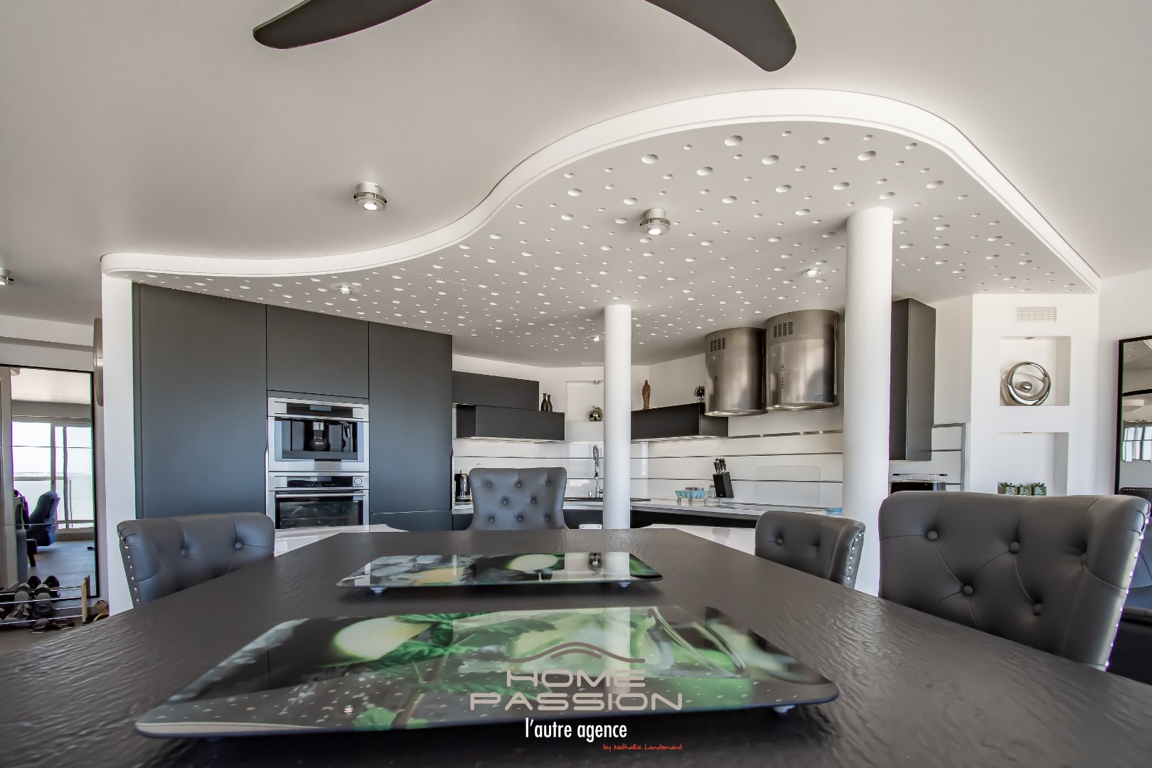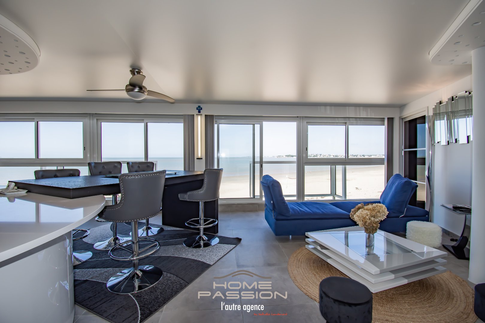 SAINT-GEORGES-DE-DIDONNE - APPARTEMENT D'EXCEPTION VUE MER + STUDIO - EXCLUSIVITE - Situé face à la plage au rez-de-chaussée d'une résidence sécurisée, Home Passion vous présente ce splendide appartement + studio de 100m2 vendu meublé bénéficiant d'un emplacement privilégié. Posé sur le sable, il offre une vue à 180° grâce à son mur de verre. La pièce de vie de 39m2 avec cuisine très bien équipée constitue l'un des points fort de cet appartement sans oublier la vue mer de toutes les pièces. Côté nuit, on accède à une vaste suite parentale avec salle d'eau, coiffeuse et placard. WC indépendant. Communicant avec l'appartement principal, un studio entièrement équipé avec une entrée indépendante complète la capacité d'accueil de cet appartement. Deux emplacements parking. Charges prévisionnelles 1400 euros/an. Plus de photos, plus de détails sur le site de l'agence Home Passion. DONT honoraires 3,75% à la charge de l'acquéreur. DPE ancienne version : montant estimé et indexé au 15 août 2015 des dépenses annuelles d'énergie pour un usage standard : 1063