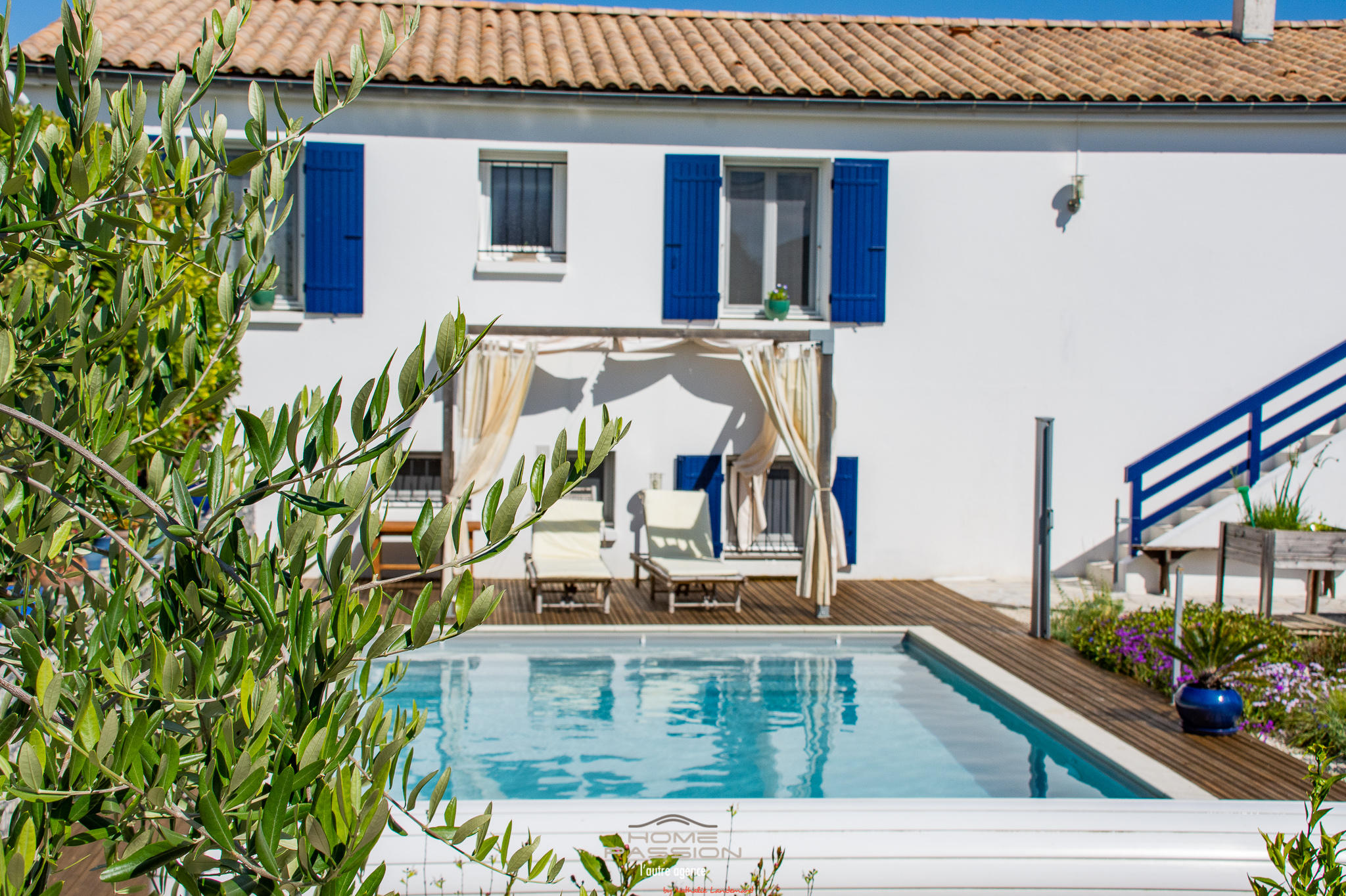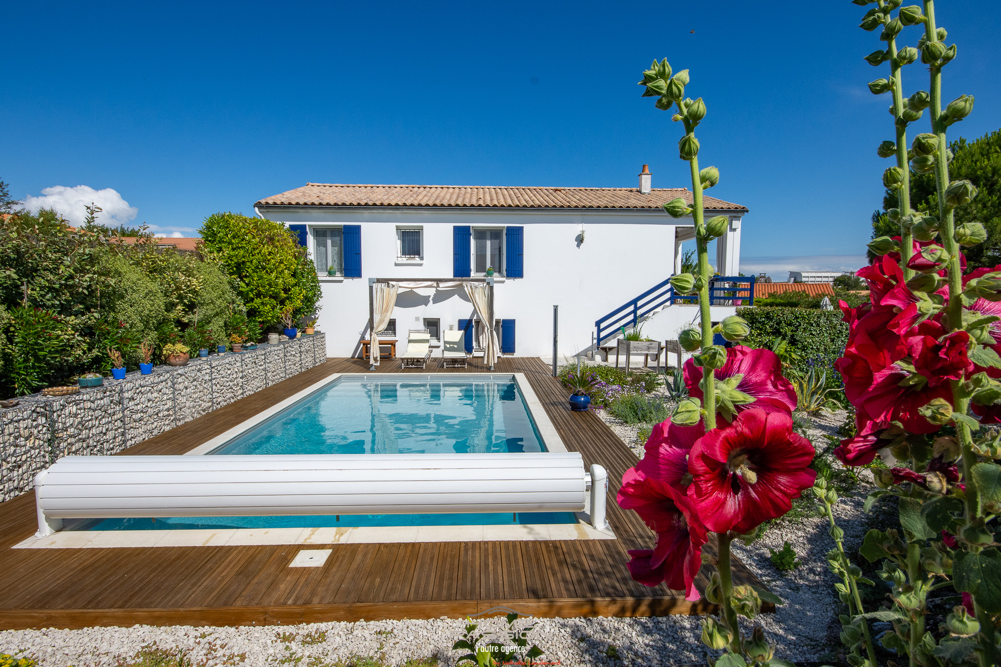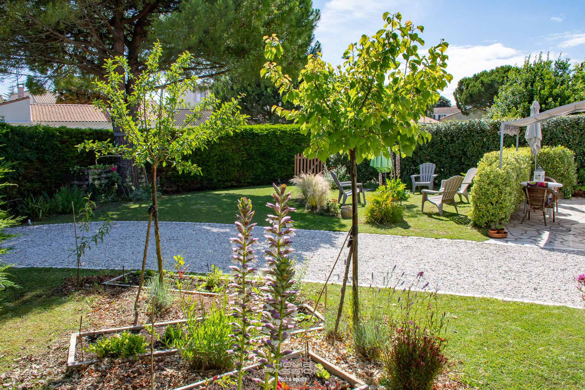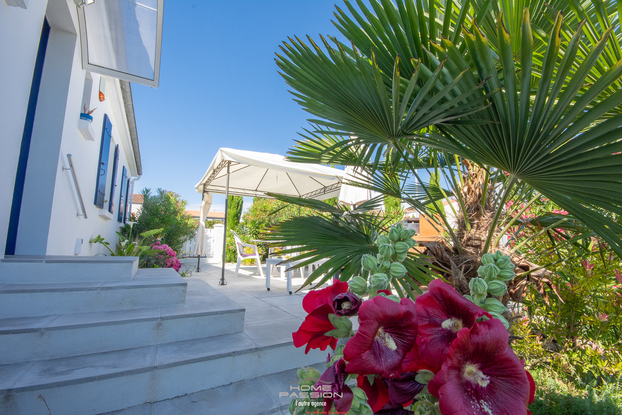ROYAN - JOLIE MAISON AVEC PISCINE ET APPT INDEP. EXCLUSIVITE Située à 1500m du Marché Central de ROYAN et à 750m d'une boulangerie, Home Passion vous présente cette jolie maison de 122 m2 habitables en excellent état général dans un environnement paysager de type méditerranéen avec piscine et appartement T2 indépendant. Au calme, cette maison accueille en rez-de-chaussée une entrée, une pièce de vie avec cuisine équipée de 43m2 ouvrant sur une terrasse couverte, 3 chambres, une salle de bain spacieuse et un WC. De par la topographie de son jardin, on retrouve ensuite un très joli appartement T2 de 33m2 en rez-de-jardin, très bien agencé, idéal dans le cadre d'un 'co-toiturage' familial ou bien encore en locatif saisonnier. Puis s'ajoutent un garage, une buanderie et un cellier. Côté jardin, d'inspiration méditérranéenne, on appréciera les différentes terrasses ombragées, ou pas, pour profiter du jardin en fonction des heures de la journée, et enfin la superbe piscine sécurisée de 8X4 particulièrement bien exposée avec plage de détente. Plus de photos, plus de détails sur le site de l'agence Home Passion. DONT honoraires 3,93% TTC à la charge de l'ACQUEREUR.