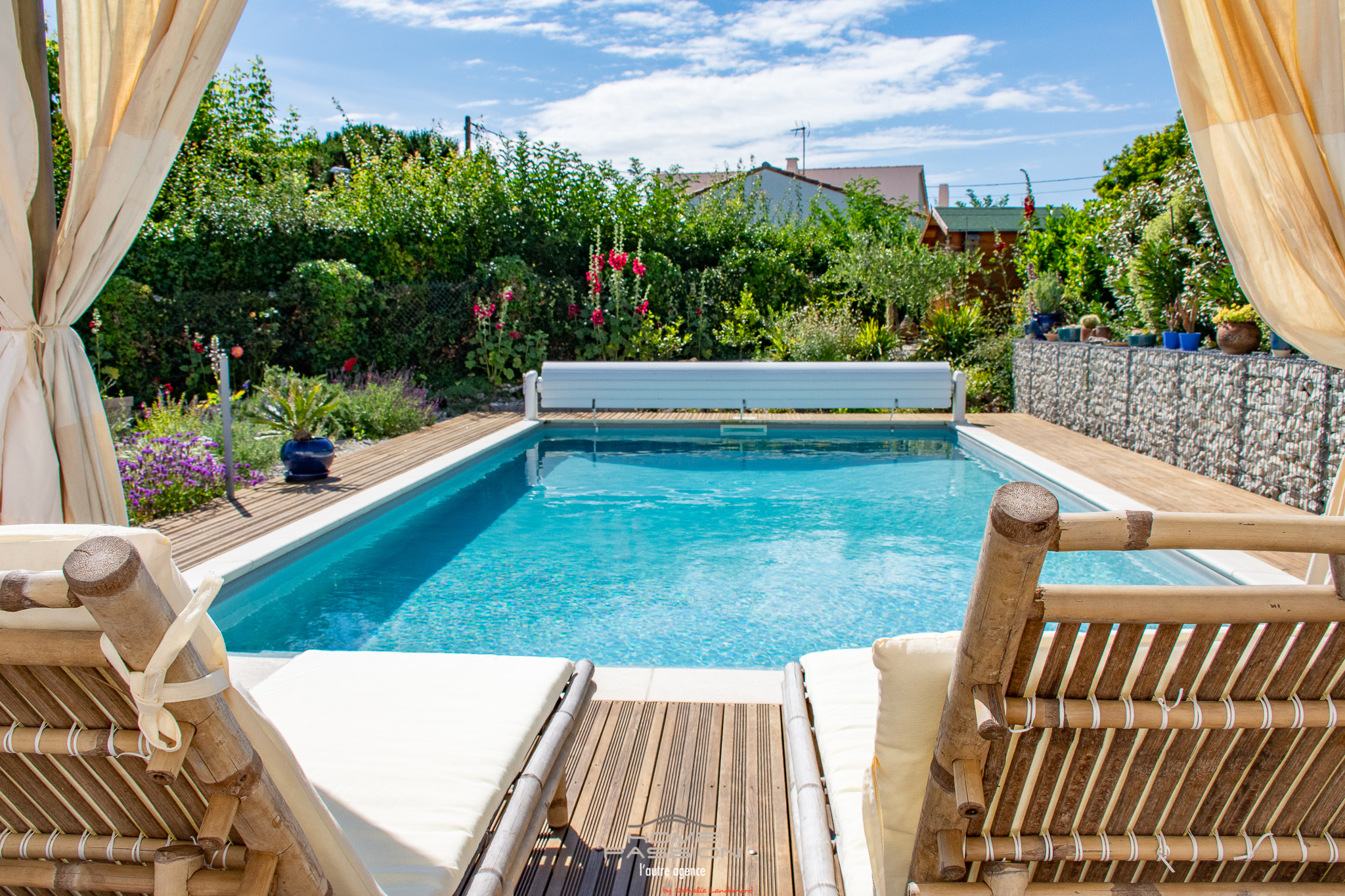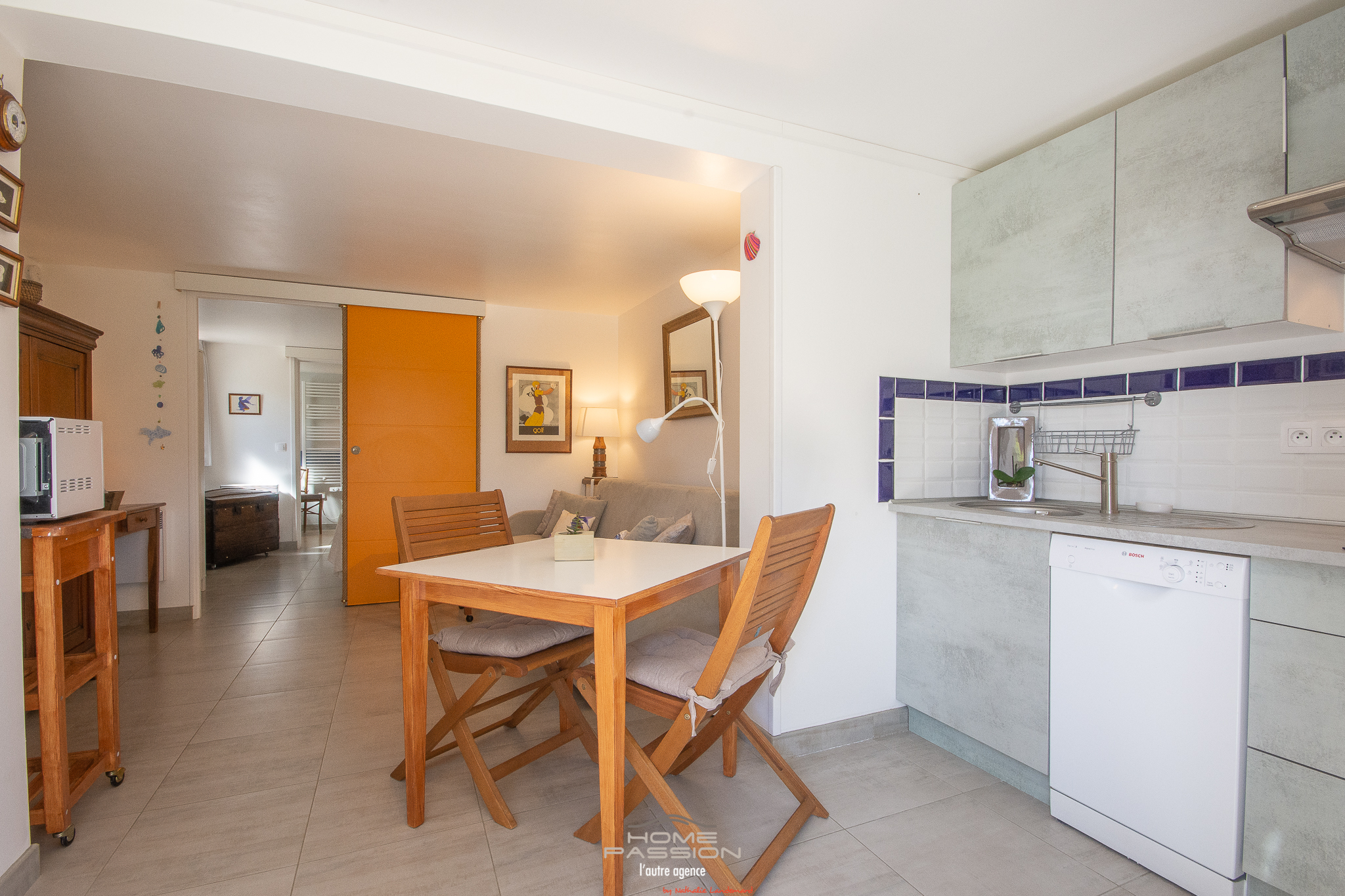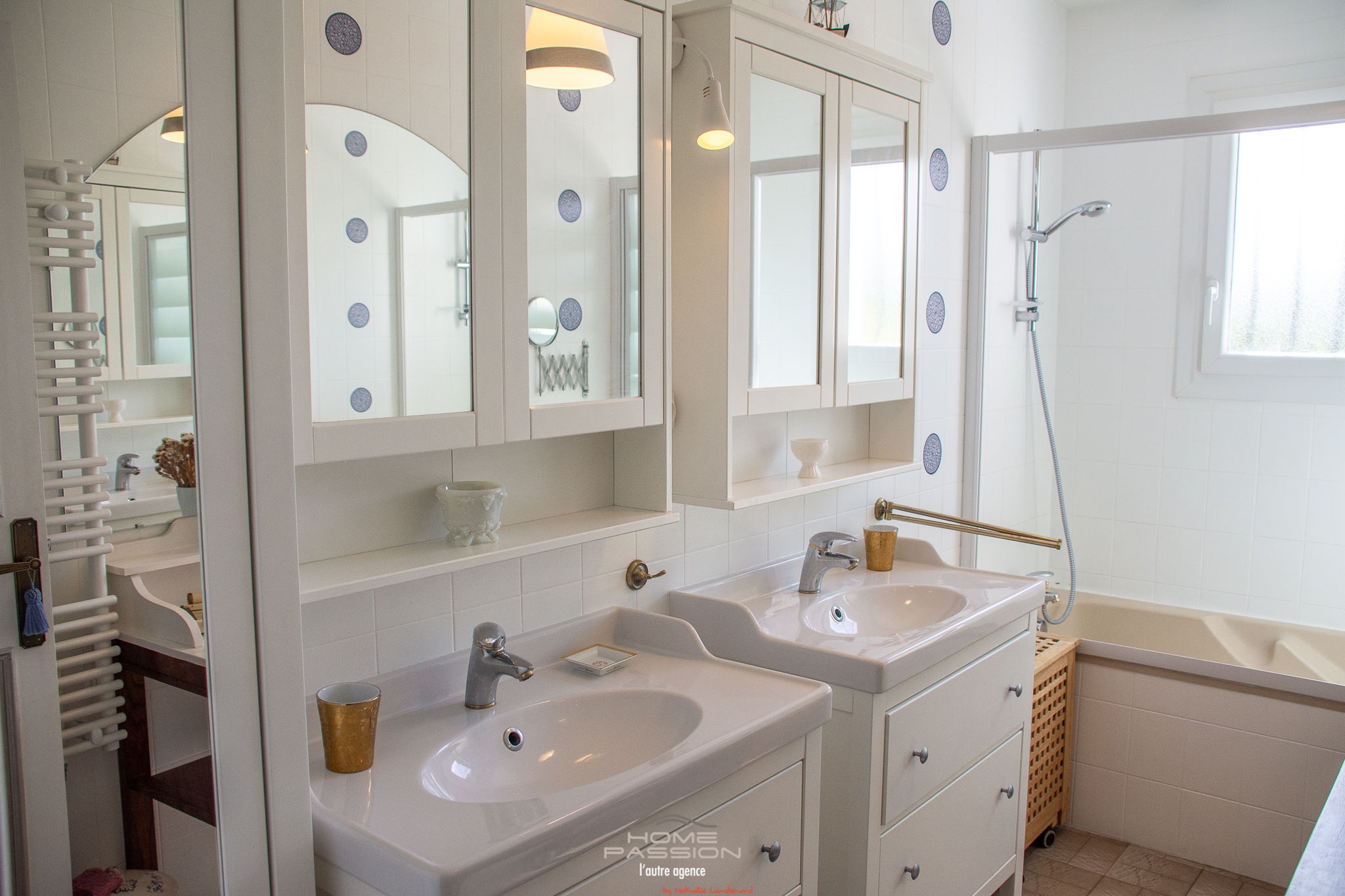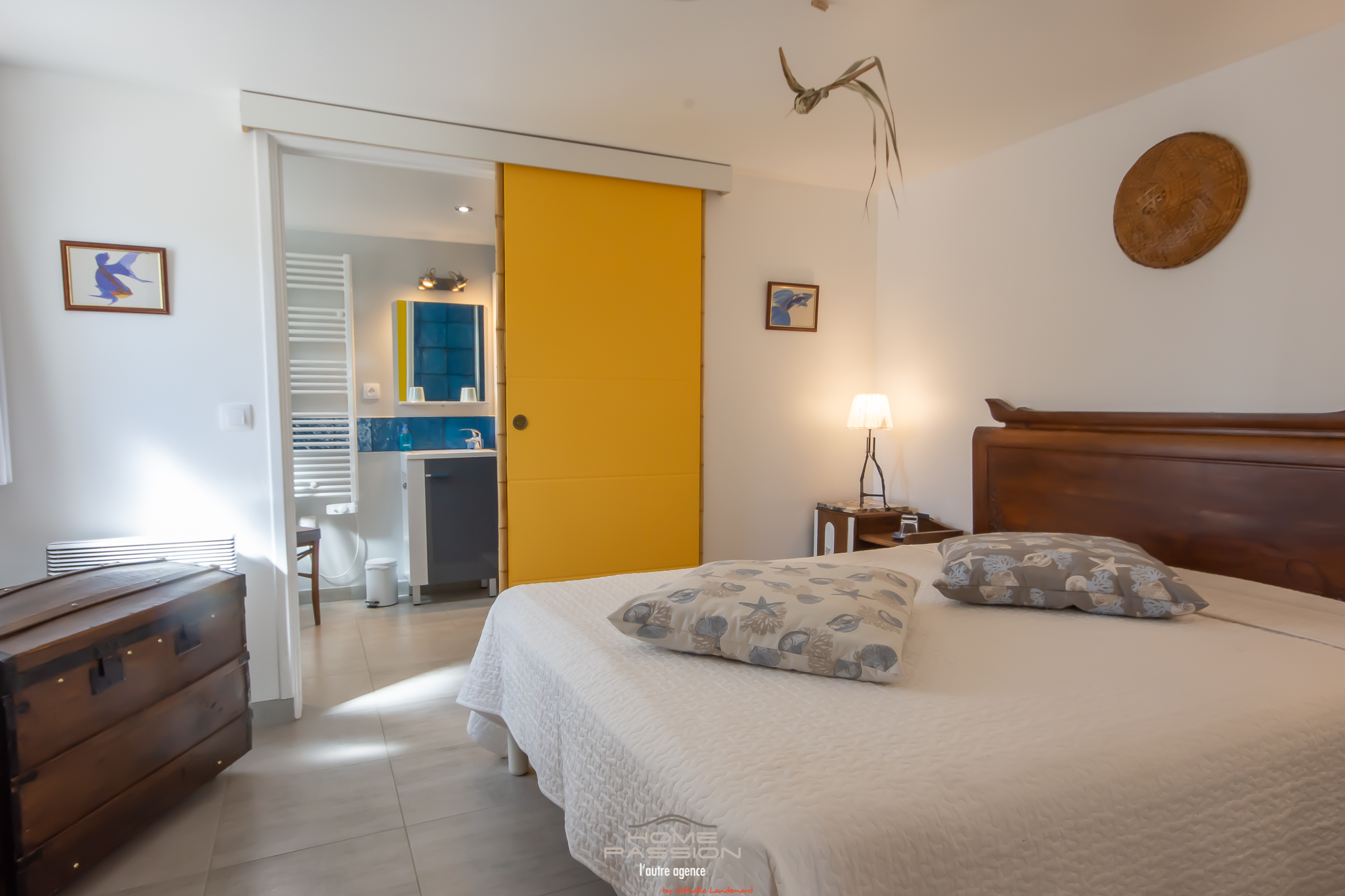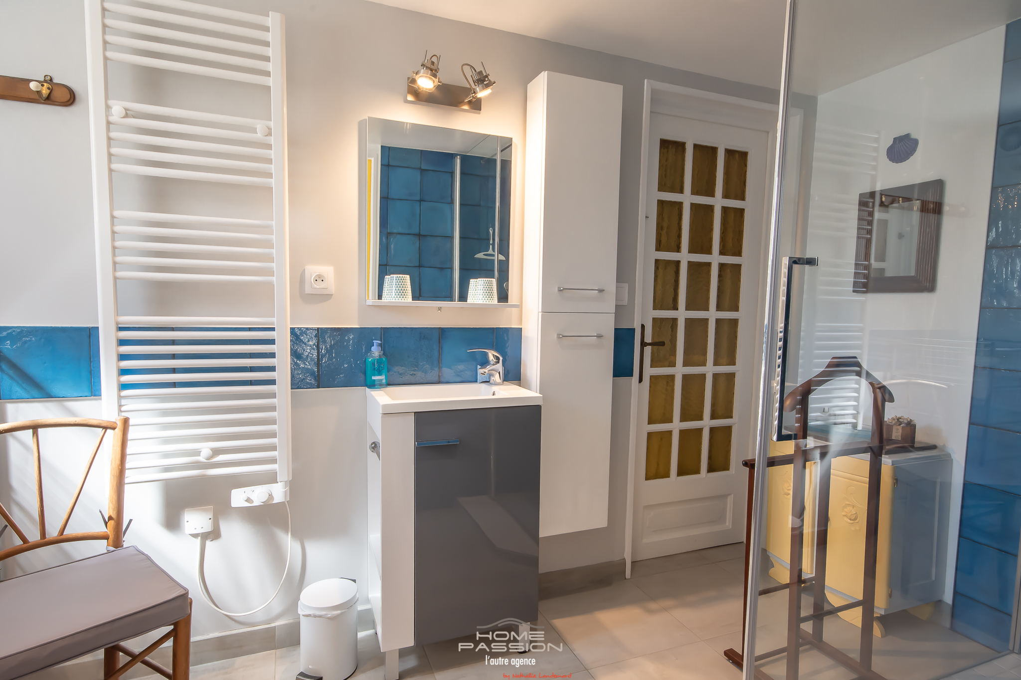ROYAN - JOLIE MAISON AVEC PISCINE ET APPT INDEP. EXCLUSIVITE Située à 1500m du Marché Central de ROYAN et à 750m d'une boulangerie, Home Passion vous présente cette jolie maison de 122 m2 habitables en excellent état général dans un environnement paysager de type méditerranéen avec piscine et appartement T2 indépendant. Au calme, cette maison accueille en rez-de-chaussée une entrée, une pièce de vie avec cuisine équipée de 43m2 ouvrant sur une terrasse couverte, 3 chambres, une salle de bain spacieuse et un WC. De par la topographie de son jardin, on retrouve ensuite un très joli appartement T2 de 33m2 en rez-de-jardin, très bien agencé, idéal dans le cadre d'un 'co-toiturage' familial ou bien encore en locatif saisonnier. Puis s'ajoutent un garage, une buanderie et un cellier. Côté jardin, d'inspiration méditérranéenne, on appréciera les différentes terrasses ombragées, ou pas, pour profiter du jardin en fonction des heures de la journée, et enfin la superbe piscine sécurisée de 8X4 particulièrement bien exposée avec plage de détente. Plus de photos, plus de détails sur le site de l'agence Home Passion. DONT honoraires 3,93% TTC à la charge de l'ACQUEREUR.