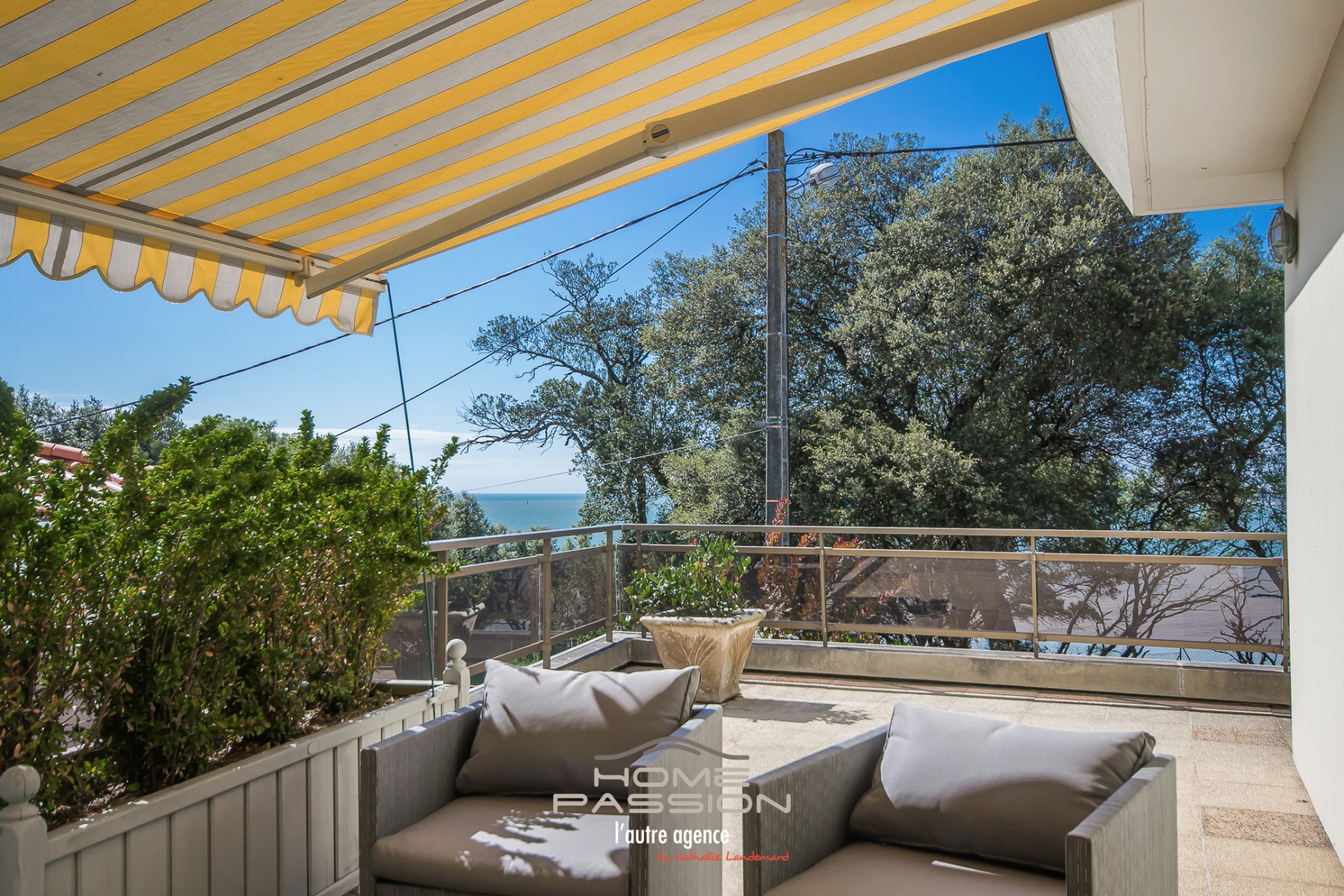 SAINT GEORGES DE DIDONNE GRANDE VILLA VUE MER Située à 200m de la plage avec une vue dominante sur la mer depuis ses pièces de vie, ses terrasses et chambres, Home Passion vous présente cette superbe VILLA de 243m2 habitables, organisée sur différents niveaux en fonction des attraits de la vue, sur un terrain clos de 414 m2. Le rez-de-chaussée assure les fonctions d'entrée spacieuse, de suite parentale avec salle d'eau privative, de bureau avec accès sur jardin, de chaufferie/buanderie et grande cave et de double garage. Le 1er étage réserve ses vues sur la mer depuis un superbe salon/séjour avec cheminée et un accès direct sur 60m2 de terrasse, une cuisine indépendante de type familiale entièrement équipée ouvrant sur le jardin et une partie terrasse, un bureau, cellier et toilettes. Le dernier niveau accueille une magnifique chambre avec larges baies sur terrasse et vue splendide, une vaste salle de bain, une grande chambre côté jardin, une chambre cabine, un dressing-room et toilettes. De bonnes prestations énergétiques par un chauffage au sol, une bonne sécurisation des lieux et prestations de confort sont au rendez-vous. Plus de photos, plus de détails sur la visite guidée en vidéo sur le site de l'agence Home Passion. DONT honoraires 3,73% à la charge de l'acquéreur.