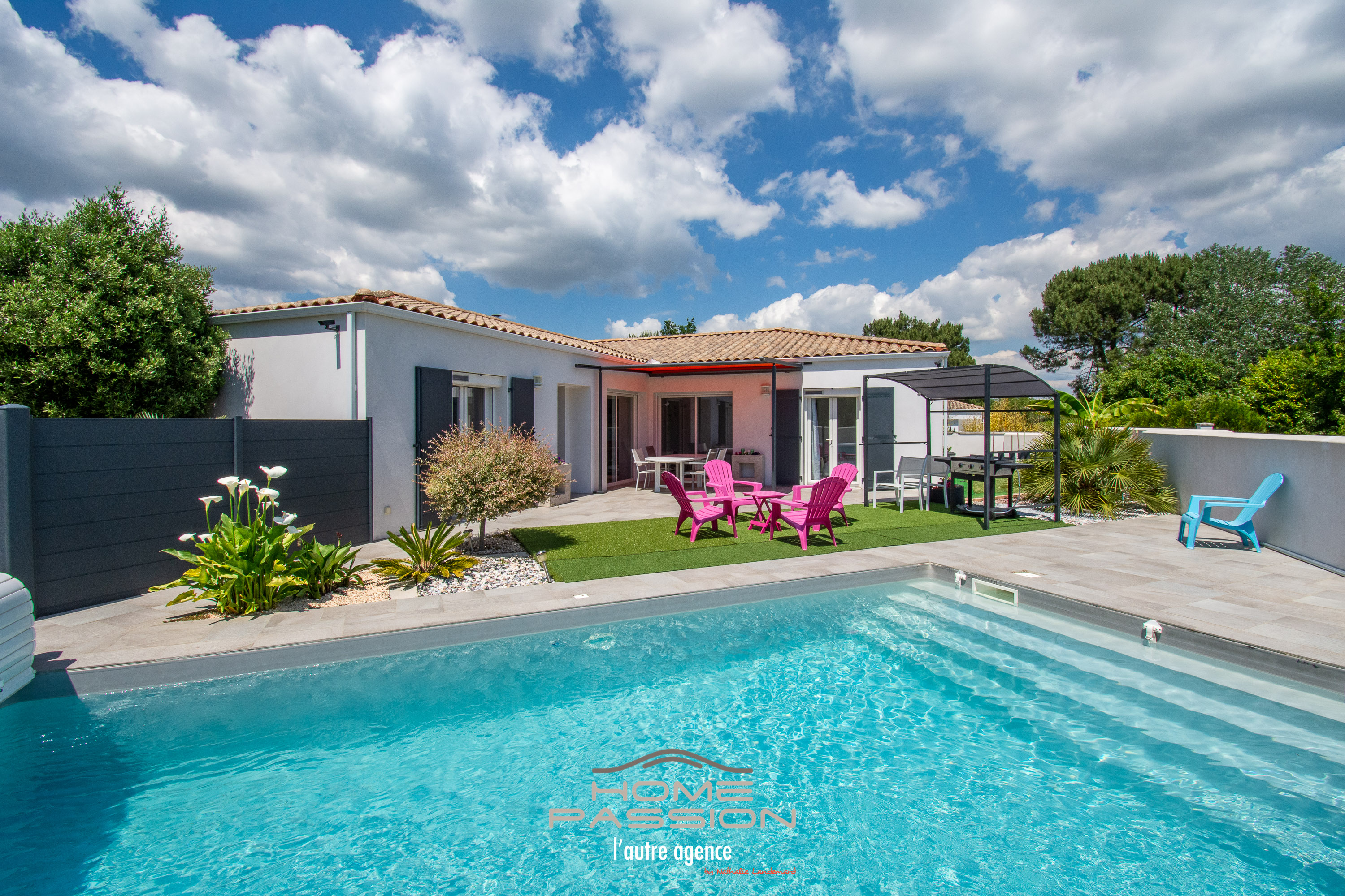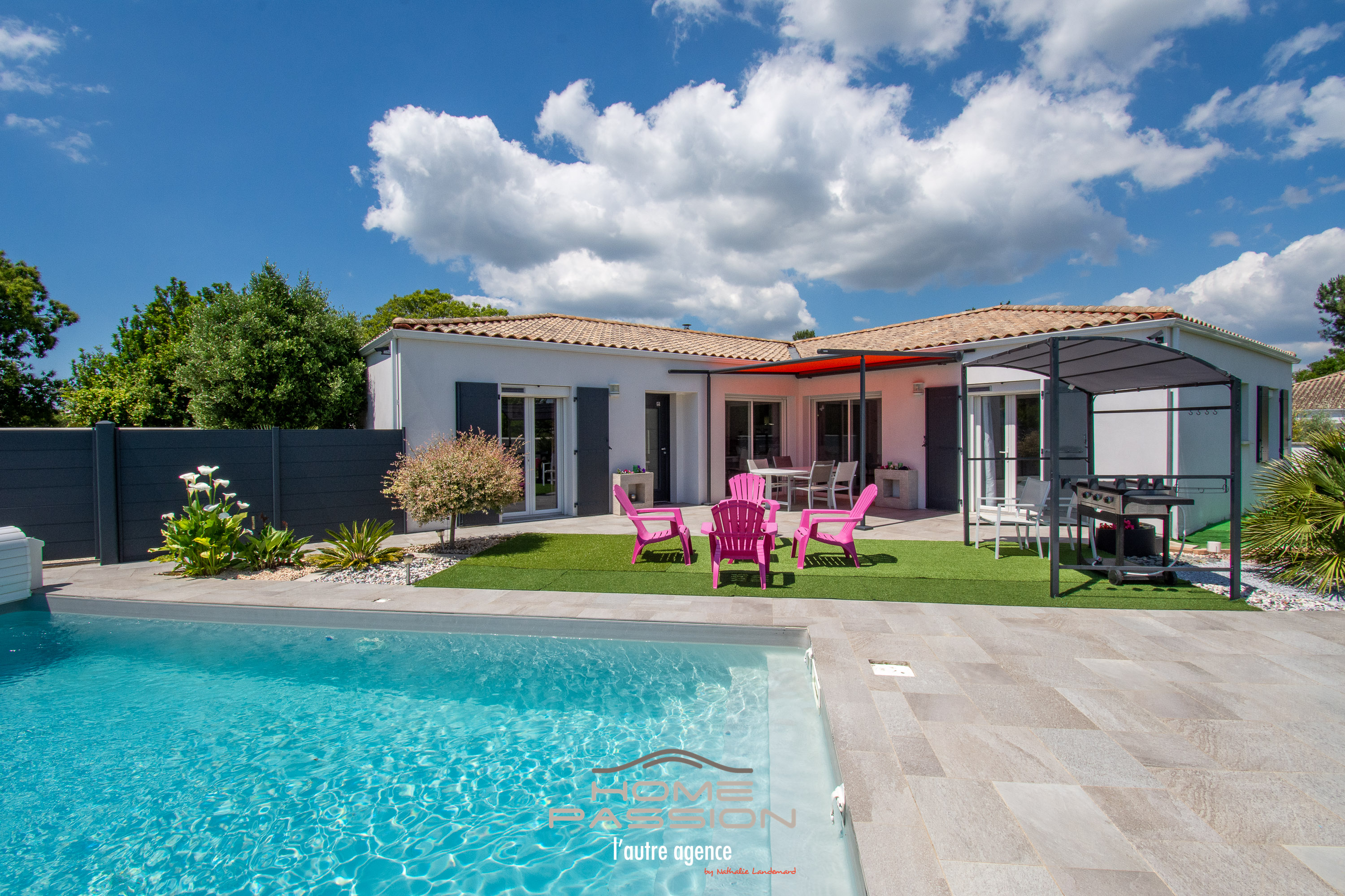 ST AUGUSTIN/MER - MAISON FAMILIALE RECENTE DE PLAIN PIED AVEC PISCINE - EXCLUSIVITE - Située au calme, à 1300m des commerces de proximité, Home Passion vous présente cette maison de plain pied de 2015 pour 139m2 habitables sur un terrain entièrement clos de 502m2 avec piscine chauffée sécurisée 7X4. Comptant 4 chambres dont une suite parentale complète avec dressing et salle d'eau privative complétées par une grande salle de bain et 2WC, l'espace de vie de 64m2 de cette maison avec sa cuisine ouverte entièrement équipée est parfaitement en adéquation avec sa capacité d'accueil. Une arrière-cuisine tout aussi bien équipée complète ses prestations. Côté jardin, on profitera de la piscine et de ses installations avec des espaces détente. Un garage, un chalet en bois assurent la partie rangement, ainsi qu'une aire de stationnement pour plusieurs véhicules. Plus de photos et de détails sur le site de l'agence Home Passion. Dont honoraires 3,95% à la charge de l'acquéreur.