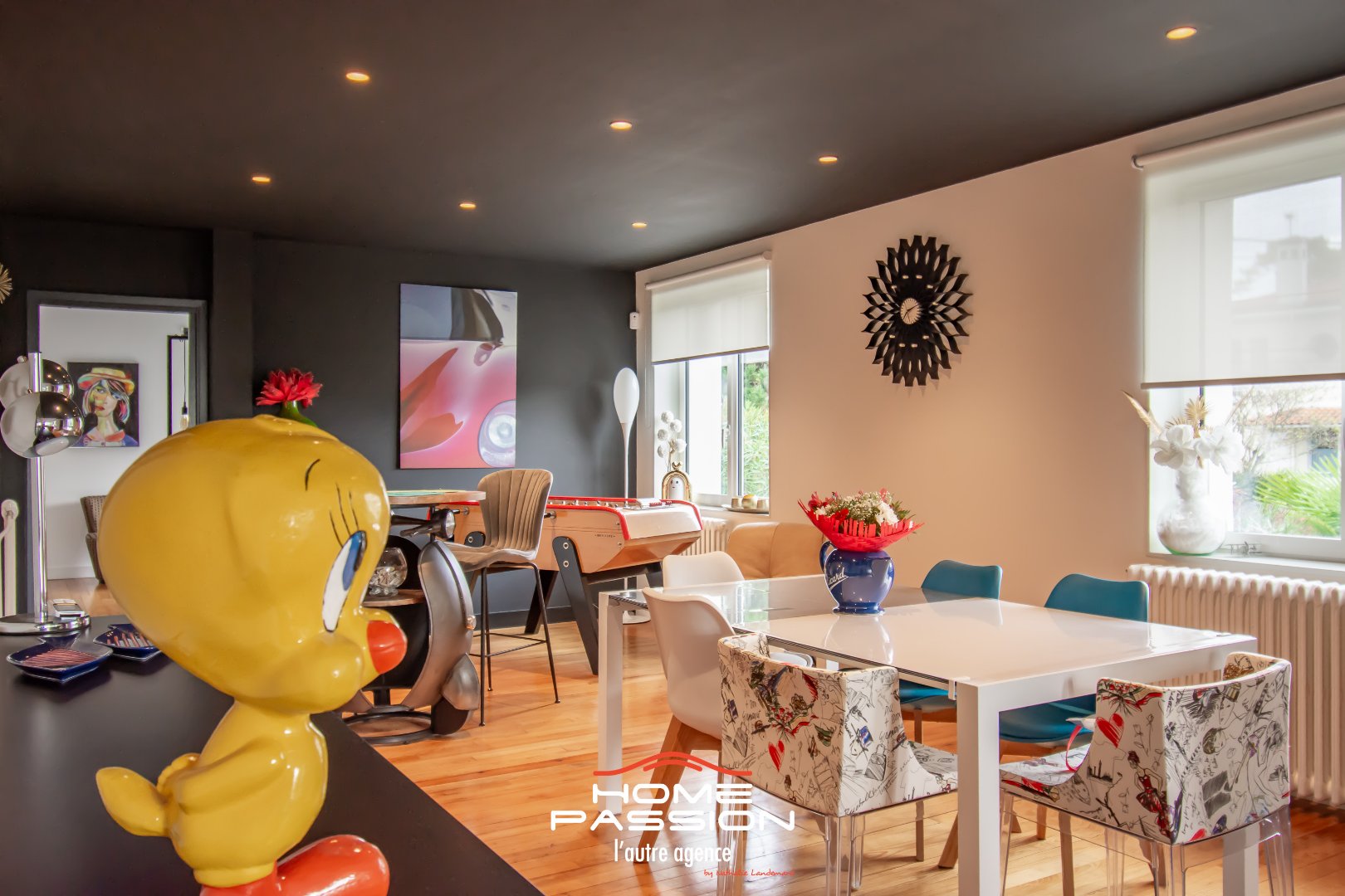ROYAN PARC - VILLA AVEC PISCINE ET JACUZZI AVEC APERCU MER - EXCLUSIVITE - Située en 2ème ligne dans le quartier prisé du Parc de ROYAN, Home Passion vous présente cette villa entièrement rénovée de 156m2 habitables sur 2 niveaux en typologie inversée sur un jardin joliment paysager de 420m2 avec piscine et jacuzzi. Le plateau principal accueille une superbe pièce de vie avec cheminée ouvrant sur une terrasse sans vis à vis avec aperçu mer, une cuisine ouverte entièrement aménagée et équipée, une suite propriétaire avec dressing et salle d'eau privative. Toilettes indépendantes. Le rez-de-chaussée comprend une entrée, un vestiaire/buanderie, une chaufferie, 3 chambres, une salle d'eau avec toilettes, une cave à vin et un grand garage de 37m2. L'ensemble est présentée dans un état exceptionnel à 120m de la plage de la Grande Conche et à 550m du Marché du Parc. Plus de photos, plus de détails sur le site de l'agence Home Passion. Dont honoraires 4.5% à la charge de l'acquéreur . DPE : en cours de réactualisation. Les informations sur les risques auxquels ce bien est exposé sont disponibles sur le site Géorisques : www.georisques.gouv.fr.